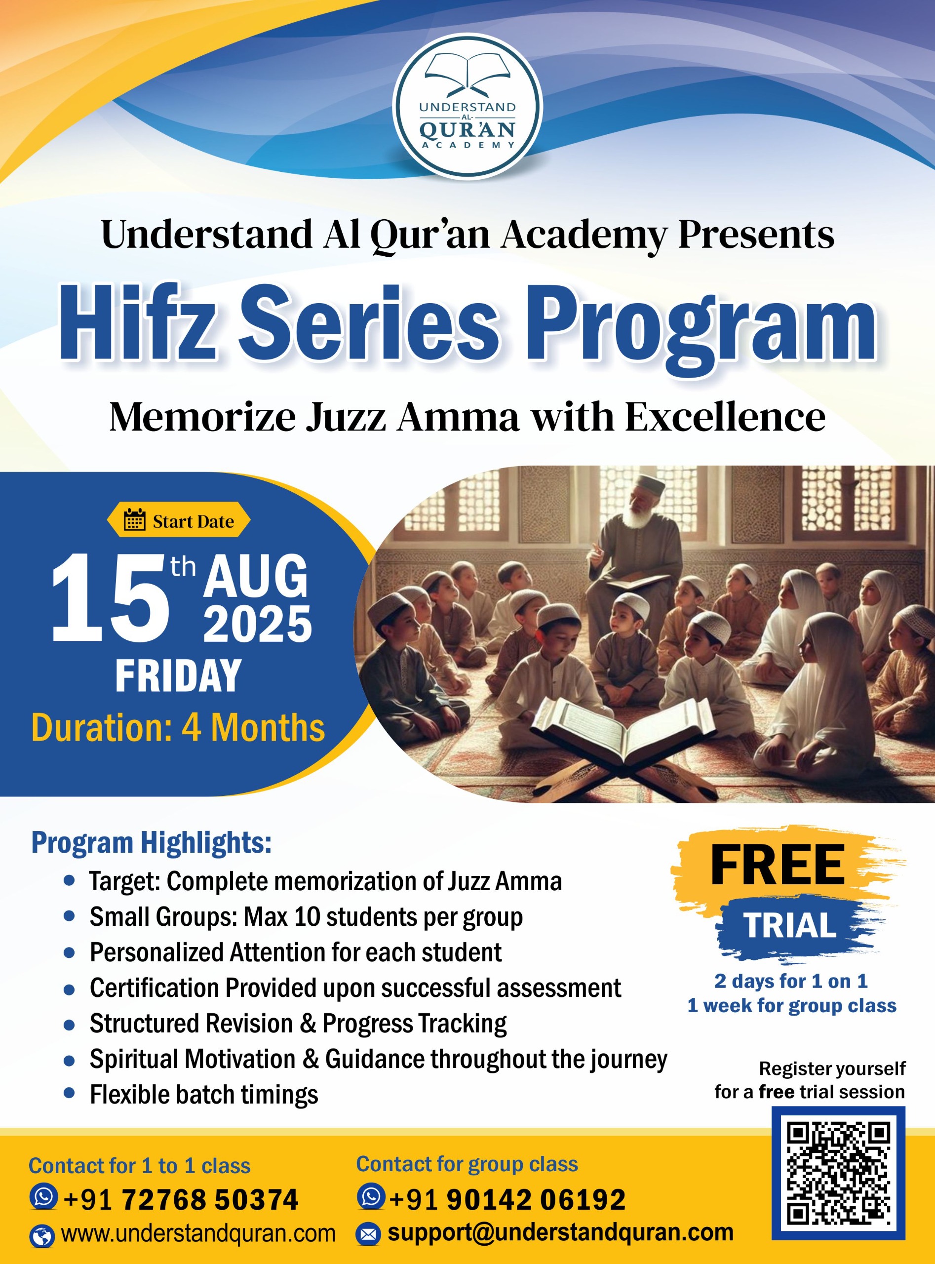 I found UQA, easier way of teaching understand quran for beginners in any age, Good Material, encouraging for understand & follow the Quran, Ahkam & Sunnah, so I choice for children, I found team cooperative, caring, guiding for all steps registering, trial classes, payment process & starting of routine classes, thanks